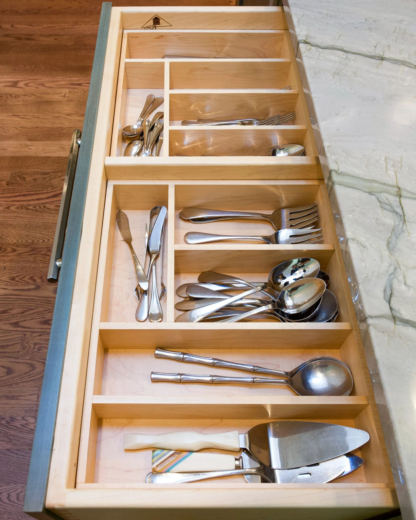 We included a variety of storage options, including dish drawers with peg dividers and drawers with cutlery trays.